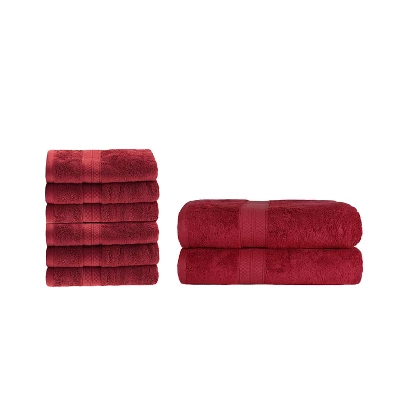 Switch out your old towels with the colorful and soft Kaitain Rayon From Bamboo Cotton Blend 8 Piece Towel Set. Crafted from a blend of bamboo and cotton for comfort and durability, these silky-soft bamboo bath towels provide a versatile absorption, perfect for the shower, bath, or beach. The pattern is a unique solid color towel with a coordinating border that will match with any Modern, Classic, Traditional, or Contemporary bathroom.