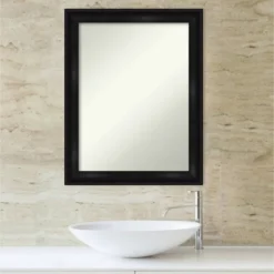 Give your bathroom the finishing touch with this Non-Beveled Wall Mirror framed with the Grand Black Narrow frame. Individually made using traditional custom framing techniques, it has the quality you would expect from your local frame shop. It holds its value with premium finishing that can be appreciated up close. Because of our attention to detail and focus on artistry, architects, interior designers, and homeowners alike choose this mirror to create beautiful living spaces.
