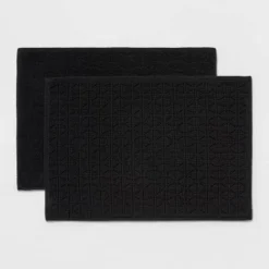 Update your bathroom decor with this Boho Rug Set from Threshold™. This bath rug set includes two similar bath mats for coordinated style. Made from absorbent cotton material, both the pieces feature a boho-inspired design in a solid color that blends easily with just about any decor. You can place one rug in front of your bathroom counter and the other next to your bathtub to keep your floors drier in elegant style.