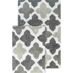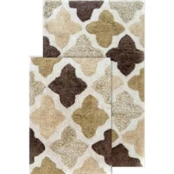 Inspired by Moroccan tiles, this two-piece bath rug set enriches any space with a subtle, yet eccentric style. Plush fabric cushions your feet for pure comfort, while a water-absorbent construction ensures lasting quality. Available in 4 natural, soothing tones. Machine tufted from 100% cotton with a lightly sprayed anti-skid back. Set includes one-21″x34″bath rug and one-17″x 24″ bath rug.