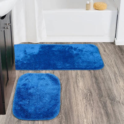 2pc Traditional Nylon Washable Bathroom Rug Set Electric Blue – Garland Rug
