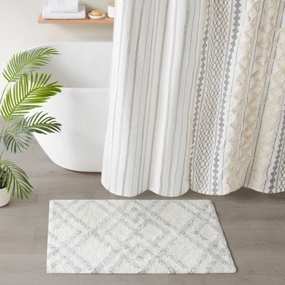 32″x20″ Ansel Geo Diamond Yarn Dyed Cotton Tufted Bath Rug – Ink+Ivy