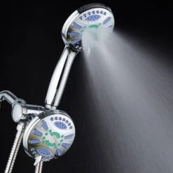 AquaStar Elite High-Pressure Ultra Luxury 48 setting 3-way Shower Head Combo with an Extra-long 6 Foot Stainless Steel Hose in a Premium Chrome finish. For superior water pressure and flow coverage, the Extra-large 4.3″ face with a 3-zone PrecisionFlo™ dial gives you a one of a kind experience. The 2-zone Antimicrobial / Anti-clog Nozzles inhibit the growth of mold, mildew, and bacteria on the surface keeping the shower cleaner with advanced water pressure, less cleaning, and better overall shower hygiene. With 6 flow settings that include: Rain, Massage, Mist, two mixed settings, and a convenient Water-saving Pause Mode for an instant on/off flow control. Ergonomic anti-slip hand shower handle for a convenient and secure grip. The dual brass hose nuts add a level of durability. Easy to clean with the spot-resistant finish and rub clean nozzles. Comes complete with all washers, plumber’s tape, and easy-to-follow instructions. Limited lifetime warranty with 100% hassle-free return policy directly from the manufacturer. EPA-registered Lifetime Antimicrobial Surface Protection from Microban®, a global leader in antimicrobial technology. 100% safe and effective for the life of the product.