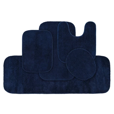 5pc Shaggy Nylon Washable Bathroom Rug Set Basin Blue – Garland Rug