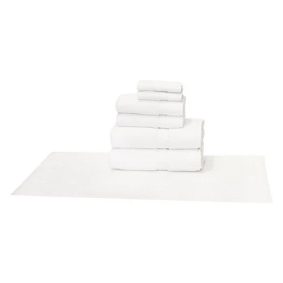 Set includes 2 bath towels (27” x 54”), 2 hand towels (16” x 30”), 2 washcloths (13” x 13”), 1 Circle Design bath mat (24” x 35”)