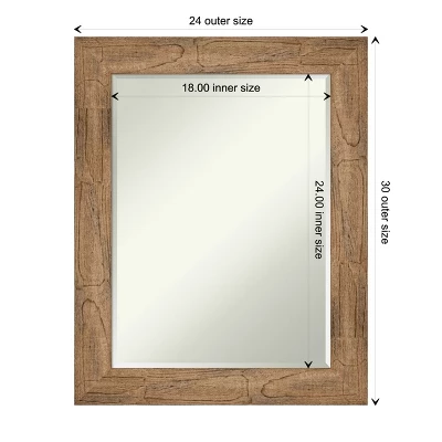 Give your bathroom the finishing touch with this 100% real wood Petite Bevel bathroom mirror. The Owl Brown frame is a natural wood frame with a slight scoop and woodgrain variation showing through. The finish is warm light brown with grey, cream, and mauve tones.. The frame is 3 in. wide and stands 0.75 in. off the wall. It’s Individually made using traditional custom framing techniques, it has the quality you expect from your local frame shop. It holds its value with premium finishing that can be appreciated up close. Because of our attention to detail and focus on artistry, architects, interior designers, and homeowners alike choose this mirror to create beautiful living spaces.