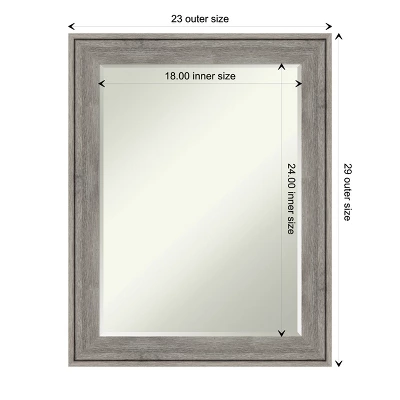- MIRROR DETAILS: This mirror features premium glass for a clear, undistorted image and is finished with a petite 1/2-inch beveled edge which is more delicate than a traditional bevel. The overall size of this bathroom mirror measures 22.5 x 28.5 inches, including the frame. Its reflective area measures 18 x 24 inches.