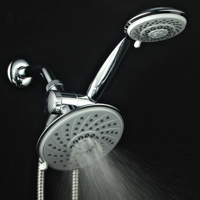 3-Way Multi-Function Rainfall Shower Head/Handheld Combo combines the 6-inch Rainfall showerhead and 6-setting 4-inch handheld shower for a smooth, flexible, and reliable showering experience. Settings include Power Rain, Pulsating Massage, Hydrating Mist, Rain/Massage, Rain/Mist, and Water-saving Economy Rain. The shower head also includes a stainless steel hose and a 3-way water diverter with an angle-adjustable bracket to direct water in multiple directions. The rub-clean nozzles will keep your showerheads operating at peak performance. Tools-free installation and comes with a Limited Lifetime Warranty.