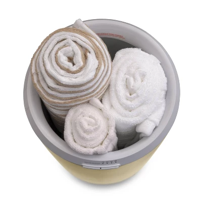 - Built-in cord storage at base of hot towel warmer bucket base