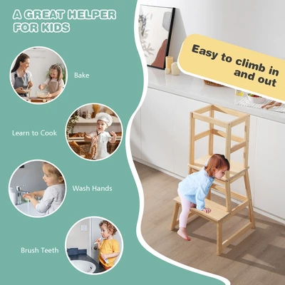 - Stable Construction & Safety Protection: The children standing tower features A-shaped structure and 4-point support which enhance the overall stability and make it not easy to tip over or wobble. Moreover, the four-sided railings keep restless toddlers safe inside.