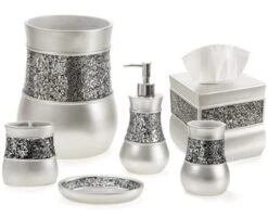 Touch of SophisticationOur Brushed Nickel collection combines timeless style with contemporary patterns to create anupscale look that will turn your bathroomâs decor from simple to sensational. Weâve combined atruly unique quilted pattern with silver Mosaic Glass that exude an elegantly clean lookthat complements any decor. Perfectly sized, this set is great for any bathroom. Itâs great forsmaller spaces but still has the presence that fills even the grandest bathrooms. Start buildingyour collection piece by piece and create bathroom decor worthy of a lifestyle magazine cover!Built to LastThis isnât just any bath set, itâs one of the most durable ones around. Weâve primarily used high-graderesin to craft the collection, known for its incredible lasting properties. The superior-quality resindoesnât easily break like regular plastic, and has zero risk of corrosion unlike most metals. So evenin the humid conditions of your bathroom, youâre guaranteed of a bath set that will remain in greatcondition. A couple of years down the line and every piece will look as breathtaking as the day you got it!Hereâs why youâll love the Brushed Nickel collection:- Predominantly gray styling that complements any decor.- Mosaic Glass add an unmistakably sophisticated touch.- Made using high-grade resin to ensure maximum durability.- Perfectly-sized to fit even tight-spaced bathrooms.- Unique design makes it a great gift for both men and women.Count on the Brushed Nickel bath set collection to lavish your bathroom with uncompromising styleand incredible quality. Click âAdd to Cartâ now!