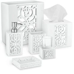 Give Your Bathroom an Impressively Exquisite TouchElegance in ActionWhether your bathroom has a contemporary look, a rustic feel, or more of a traditional décor, our Mirror Janettebath accessories complement it with color, shape, and detailing that adds an instant splash of class. You’ll lovethe rich white mirror janette look that blends into any color scheme, the soothing gentle curves, and the crackled glassdetailing that creates exquisite drama and eye-catching dance of light. Collect the bath accessories piece bypiece to end up with a bathroom that is not only functional but an elegant sight to behold.All about QualityUnlike metal that easily rusts or regular plastic that quickly cracks, these bath accessories are made using a high-graderesin that ensures maximum durability. All through the daily use and humid conditions of your bathroom, these beautifulpieces will remain in eye-catching condition for years to come. And we’ve carefully sized each accessory to ensure itsaves on valuable space while still exuding a captivating presence. Experience a hard-to-find marriage between superiorquality and great functionality.Here’s why you’ll love the mirror janette collection:- Made using high-grade resin to ensure maximum durability.- Beautiful curves create a timeless look to suit any bath.- The white mirror janette hue beautifully blends into any color scheme.- Perfectly sized to fit even tight-spaced bathrooms.- Unique design makes it a great gift for both men and women.