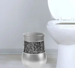 - Decor Enhanced: The Attention-grabbing Modern Mirror Janette Design Blended With Silver Hints Of The Elegant Trash Can For Bathroom Turns Any Bathroom Into An Exquisite Affair.