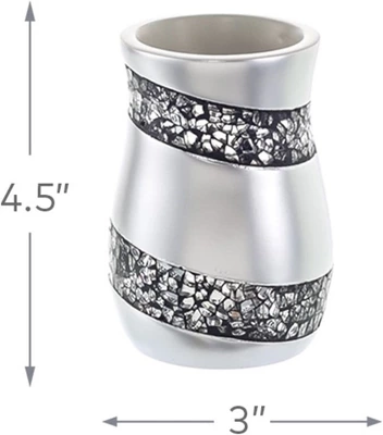 - Sip In Style: Beautiful Curves Meet A Silver And Crackled Glass Look To Create The Most Eye-catching Tumbler Cup On The Market That Gives Your Bath An Upscale Feel, Measures 3” (l) X 3” (w) X 4.5” (h) In The Bottom Of The Cup By The Top It’s Narrower