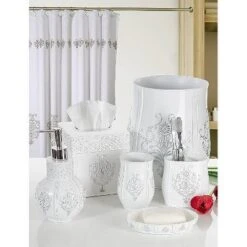 - Timeless Elegance And Universal Color: The Raised Details Of The Silver Colored French Fleur Delis Motif Give The Bathroom Sets A Vintage Touch That Brings Sophistication And Style To Any Bathroom. Whatever Your Bathroom Color Scheme, This Pristine White Bathroom Set Will Blend In Perfectly; Enhancing Your DĂŠcor With The Splendor Of French Design Thatâll Definitely Impress Your Guests.