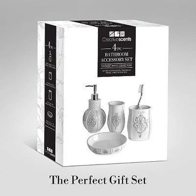 - Amazing Gift Idea: Bundle This Bathroom Accessory Sets With Other Items Of Our Vintage White Bathroom Accessories Collection To Create A Unique Housewarming Or Hostess Gift That Leaves A Lasting Impression. Click âAdd To Cartâ Now!