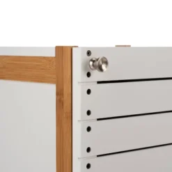 Add this stylish Organize It All Floor Cabinet to any room for concealed storage space. With 2 shelves inside this cabinet can hold many essential items. Put in your bathroom to store towels and toiletries or put in the kids room to store toys. The bamboo frame and the white cabinet door are very modern and will look great in your space.