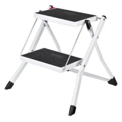 Upgrade your everyday convenience with the Delxo Folding Steel 2-Step Mini Stool Stepladder. This lightweight and versatile folding step ladder is your trusty companion for your indoor needs.With 2 sturdy steps, this stepladder offers you just the right amount of reach, making it ideal for accessing high shelves, changing light bulbs, or reaching top cabinets. This step stool is also designed for ultimate convenience. It’s light, compact, and folds easily for storage or transportation. Setting it up is a breeze, just a simple push and pull mechanism, and you’re good to go.Crafted with high-quality steel, this stepladder can withstand up to 250 pounds, ensuring your safety and stability. The non-skid rubber step pads and grips keep you secure, while the non-marring legs protect your floors. A built-in grab-and-go carrying handle makes carrying this mini-stool a snap. Take it from room to room or even on the go without breaking a sweat.Whether you’re in the kitchen, bathroom, office, or garage, this mini ladder is your versatile solution. It’s not just for adults, it also can be used by your furry friends who need a step up.Step up your daily routine with the Delxo Folding Steel 2-Step Mini Stool Stepladder. It’s time to embrace convenience, quality, and safety in one sleek package.