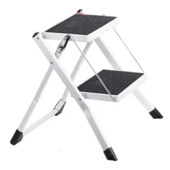 Upgrade your everyday convenience with the Delxo Folding Steel 2-Step Mini Stool Stepladder. This lightweight and versatile folding step ladder is your trusty companion for your indoor needs.With 2 sturdy steps, this stepladder offers you just the right amount of reach, making it ideal for accessing high shelves, changing light bulbs, or reaching top cabinets. This step stool is also designed for ultimate convenience. It’s light, compact, and folds easily for storage or transportation. Setting it up is a breeze, just a simple push and pull mechanism, and you’re good to go.Crafted with high-quality steel, this stepladder can withstand up to 250 pounds, ensuring your safety and stability. The non-skid rubber step pads and grips keep you secure, while the non-marring legs protect your floors. A built-in grab-and-go carrying handle makes carrying this mini-stool a snap. Take it from room to room or even on the go without breaking a sweat.Whether you’re in the kitchen, bathroom, office, or garage, this mini ladder is your versatile solution. It’s not just for adults, it also can be used by your furry friends who need a step up.Step up your daily routine with the Delxo Folding Steel 2-Step Mini Stool Stepladder. It’s time to embrace convenience, quality, and safety in one sleek package.