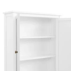 This collection brings space saving storage to your bathroom. The classic design compliments almost any bathroom décor. Wood construction with a white, painted finish, these pieces are designed for both style and functionality. A perfect space saver for your bathroom; over the toilet space saver hutch allows you to tuck away your toiletries behind two doors. The cabinet design offers ample storage. The cabinet features two adjustable shelves that are ideal for storing items of different sizes. The 27″W shelf provides space for decor or bathroom accessories and features two towel rods. Bath collection is moisture resistant.