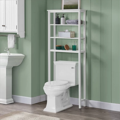 This collection brings space saving storage to your bathroom. The classic design compliments almost any bathroom décor. Wood construction with a white, painted finish, these pieces are designed for both style and functionality. A perfect space saver for your bathroom; over the toilet space saver organizer features three open shelves with plenty of space to keep toiletries, folded towels and decorative accessories. Bath collection is moisture resistant.