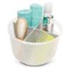 - Creates storage space for bath and shower necessities to keep items such as shampoo bottles, body wash, bar soap, and more off the floor