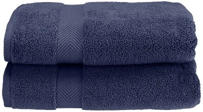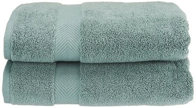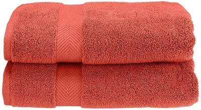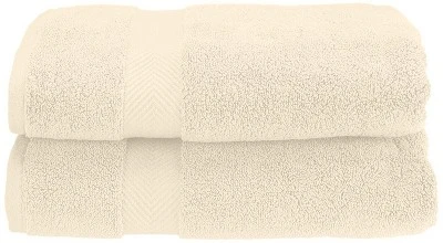 Refresh your shower space with this 2-Piece Cotton Zero Twist Bath Towel Set. Crafted with premium Cotton construction, the two-ply 575 grams per square meter (GSM) construction makes these towels just as long-lasting and durable as they are stylish. This charming set includes 2 bath towels in an assortment of solid colors. Featuring crisp, hemmed edges and a detailed chevron border, this gorgeous set is sure to elevate the beauty of your bathroom and give you a look youll love.