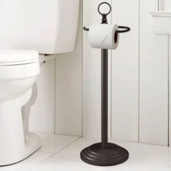 - FREE STANDING – Place on the bathroom floor right by the toilet, and paper can be dispensed at the correct height