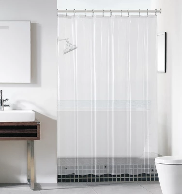 The perfect solution for an inexpensive, budget friendly basic shower liner for your home by GoodGram®. Features metal grommets to prevent tearing. Shower hooks sold separately. Lightweight. Ready for immediate use. Mold & Mildew resistant. Spot clean.