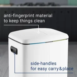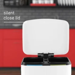 Maximize space, minimize waste with a step can that serves as both trash and recycle bin in one. Its slim design features a durable steel step and soft-closing lid. A double bucket interior houses separate bins for recyclables and for trash. Easy-lift handles on each side, and easily removable liners means each bin is always clean, fuss-free and convenient to empty. Compatible with most kitchen-sized trash bags.