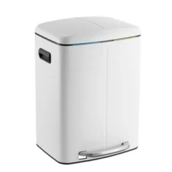 Maximize space, minimize waste with a step can that serves as both trash and recycle bin in one. Its slim design features a durable steel step and soft-closing lid. A double bucket interior houses separate bins for recyclables and for trash. Easy-lift handles on each side, and easily removable liners means each bin is always clean, fuss-free and convenient to empty. Compatible with most kitchen-sized trash bags.