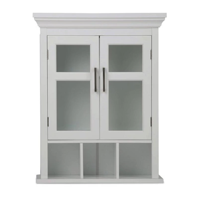 Like to have a little more space in your bathroom? This stylish wall cabinet gives you just that, with two doors opening to an adjustable shelf and three open cubbies. Fill it up with all of the toiletries that you normally have on the counter and your bathroom will look uncluttered and spacious.
