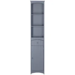 - Added Storage: There never seems to be enough storage in the bathroom for everything you need. This tall bathroom cabinet has a 3-tier shelf and enclosed cabinetry, so you can store towels, daily hygiene products and cleaning supplies without trying to fit everything under the sink.
