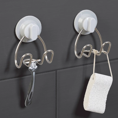 Always have your shower necessities at the ready with the Zenna Home Power Grip Pro Rustproof Multi-Surface Dual Mount Shower Storage Hook Set. This convenient set comes with two stainless steel storage hooks that are durable and guaranteed rustproof for life. Great for hanging razors, washcloths, loofahs and more, these hooks attach securely to the walls of your shower with no tools needed. Choose Power Grip Pro suction-mount installation on smooth surfaces like tile and the strong adhesive on smooth surfaces, tub surrounds and lightly-textured tile.