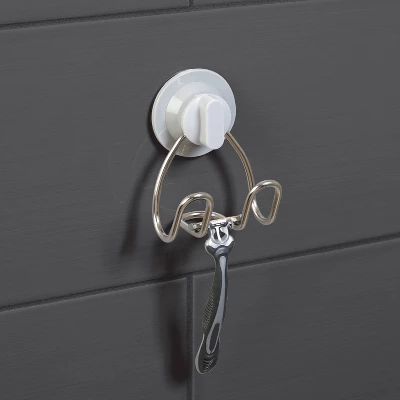 - Hooks provide easy-to-access hanging storage for razors, washcloths and more