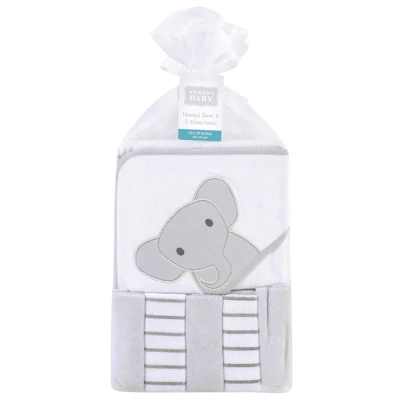 Hudson Baby hooded towel and five washcloths is a comfortable and cozy bathset to make bath time more fun for your little one and convenient for you. Featuring five washcloths and an embroidered hooded towel, our bathset features all your essentials in one easy to purchase set. Hudson Baby Infant Unisex Hooded Towel and Five Washcloths, Modern Elephant is a great baby essentials set for your little one.