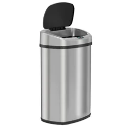 - 100% Touchless Trash Can with Sensor-Operated Lid