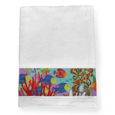 Bring some cheer to your daily routine with Laural Home’s “Fish in the Hood” bath towel. This towel features a bright and colorful underwater scene of fish and other sea creatures in vivid hues of coral, blue, green and purple. This towel will add positive energy to your bathroom décor!