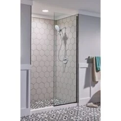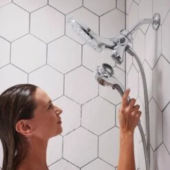 Everyone in your family is sure to appreciate the versatility of this Moen Magnetix Engage Rain Shower and Hand-Held Showerhead Combo in Chrome. Featuring an innovative magnetic docking system that makes taking down your hand shower simple and putting it back a snap, this chrome combination showerhead is both functional and beautiful. A three-way diverter lets you choose one or both shower heads, while a rotating outer ring on the hand shower lets you choose between three massage types, wide coverage, rinse and downpour modes. Bathing kids, grooming pets and cleaning are all easier than ever thanks to the generous, tangle-free metal hose, and you can easily pause the hand shower temporarily with the push of a button. Plus, it’s all finished in a gleaming chrome for clean and simple style you’ll love.