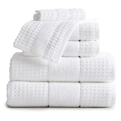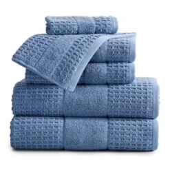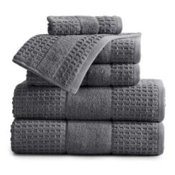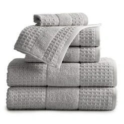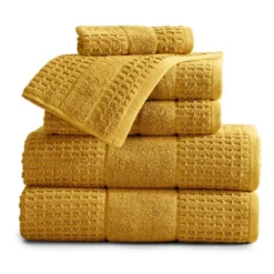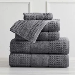 Made from premium quality 100% Cotton, these Harper Collection 6-Piece Bath Towel Sets by Market & Place provide ultimate softness, absorbency, and durability. Features a variety of classic solid hues with a textured waffle weave to add elegance and flair to any bathroom décor. These towels are super durable and machine washable to provide you with long lasting use and enjoyment; once washed, these towels fluff right back up. Makes a perfect gift for weddings, birthdays, holidays, and more! The 6-Piece Towel Set includes 2 Bath Towels (30″ x 52″), 2 Hand Towels (16″ x 28″), and 2 Washcloths (12″ x 12″)
