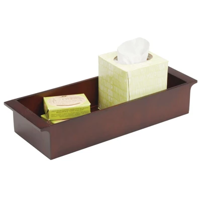 The mDesign Bamboo Tank Top Storage Tray makes it easy to store bathroom necessities and accessories in one convenient place. The tray fits on top of most standard sized toilet tanks for compact bathroom storage. Its serves as a beautiful accent for bathrooms and powder rooms while keeping items neat and organized. The modern design will blend nicely with any bathroom decor, while the built-in handles make moving it simple and easy! Use it on the toilet tank, bathroom countertops and vanities, or on dresser tops, shelves and entryway tables.