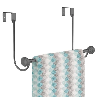 The mDesign Over Door Bath Towel Bar Holder is the perfect storage solution to the out-of-reach bath towel. The stylish design of this towel bar adds a modern look to any bathroom motif, while its open design keeps towels at the ready for you or your guests. Install over the shower door, or hang on a bedroom or closet door to help damp towels dry.