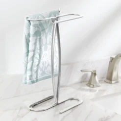 MDesign Metal Hand Towel Holder Stand For Bath Vanity Countertop, 2 Pack, Chrome
