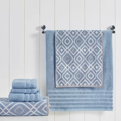 - Set includes 1 bath, 1 hand each jacquard and 1 of each in a solid, 2 solid wash cloths