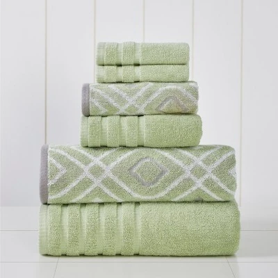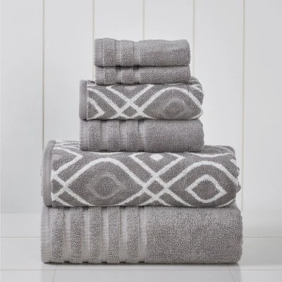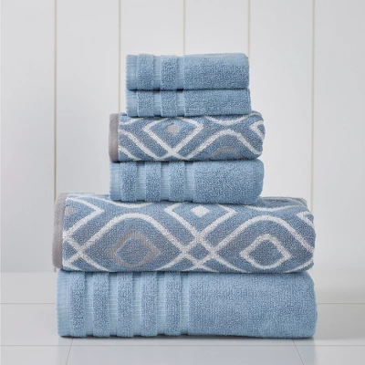 Bring color, style, and elegance to your bathroom decor with this 6-piece towel set. The set features two bath towels, two hand towels, and two wash clothes, crafted from extra soft combed cotton for a cozy, durable, and absorbent design. Half of the set features a solid color pattern, while the other half features a medallion graphic design, allowing you to mix and match the towels to add style and texture to your room. Durable enough for everyday use, or as a pop of fashion to brighten up your bathroom.