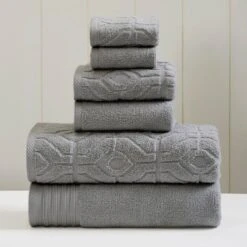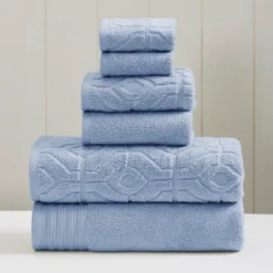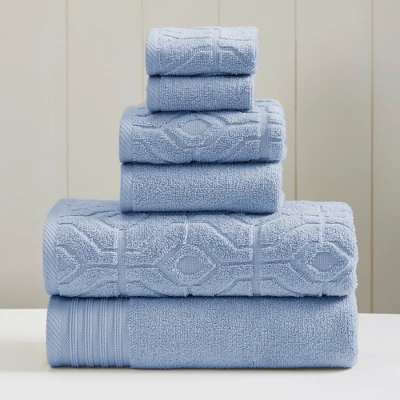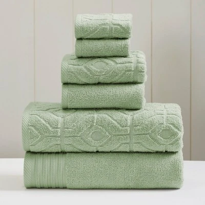 Bring color, style, and elegance to your bathroom decor with this 6-piece towel set. The set features two bath towels, two hand towels, and two wash clothes, crafted from extra soft combed cotton for a cozy, durable, and absorbent design. Half of the set features a solid color pattern, while the other half features a medallion graphic design, allowing you to mix and match the towels to add style and texture to your room. Durable enough for everyday use, or as a pop of fashion to brighten up your bathroom.