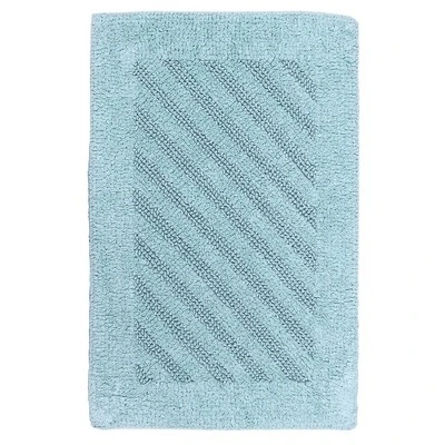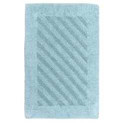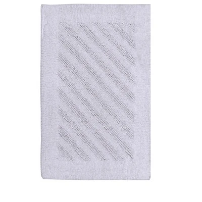 Designed to sit alongside your tub, shower, or sink and provide a comfortable, warm, dry spot for you to stand, the Knightsbridge rug will coordinate with infinite decorating styles. This opulent diagonal striped bath rug is made of 100% soft plush cotton and is super soft to the touch with a dense lush pile. Its reversible design is the ultimate in comfort while being extremely absorbent and functional. The beautiful array of contemporary colors will add an elegant look to any bathroom decor. Available colors: White, Ivory, Silver, Natural, Sage, Light Blue, and Stone. Measures: 21in x 34in
