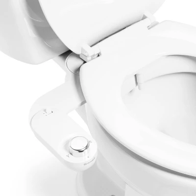 Take your personal hygiene to new heights. Our SimpleSpa Eco Essential Bidet Attachment delivers a front and rear wash, with adjustable water pressure. Control your wash using the convenient side-arm panel with attractive aluminum knob and easy nozzle adjuster. We’ve integrated 65% recycled ABS plastic into the durable bidet frame, and added water-saving Nebia spray technology into the retractable nozzle.