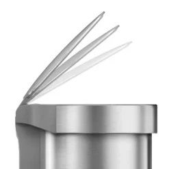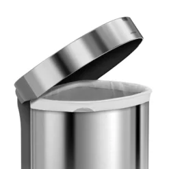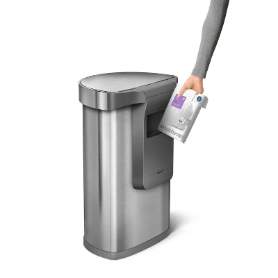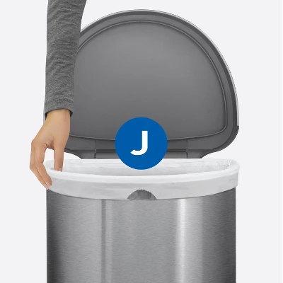 This touch-free semi-round sensor can opens automatically with just a wave of your hand so throwing trash away is quick, efficient and hassle-free. It has a motion sensor that is smart enough to adapt to you and the surrounding environment — no false triggers, no unexpected lid closures. This can also features an innovative ‘liner pocket,’ which stores and dispenses liners from inside the can for a faster liner change. The liner rim lifts up for easy access to the liner, then closes to grip and keep it neatly out of sight. An invisible nano-silver clear coat protects stainless steel from fingerprints and germs. ADA-compliant.