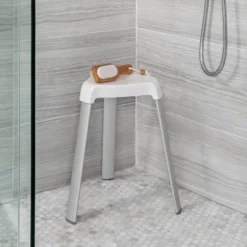 Pamper your legs and feet with the SMART Foot Seat. The sleek corner-fit design provides an ideal space-saving seating solution in any shower. With strong and durable rust-proof aluminum legs and anti-slip rubber feet, the SMART Foot Seat is as safe as it is chic. Have a seat while caring for your feet or use this petite stool as a foot rest when shaving your legs! Achieve the spa feel you’re looking for with the SMART Foot Seat.